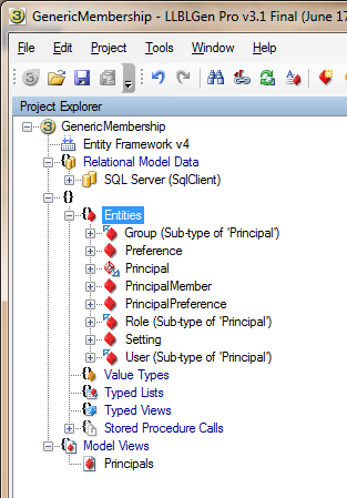 - Use the model-first approach in LLBGen Pro designer to create a simple membership API with some table-per-type inheritance;