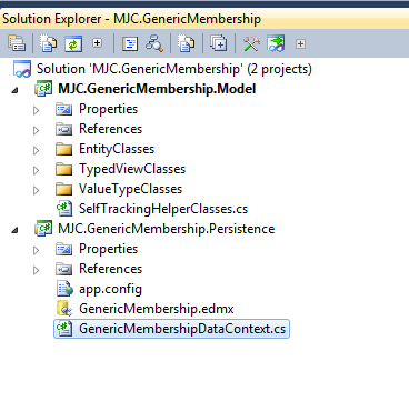 Upon re-generating the code, the visual studio solution looks as follows. Notice the new directories and repository classes.